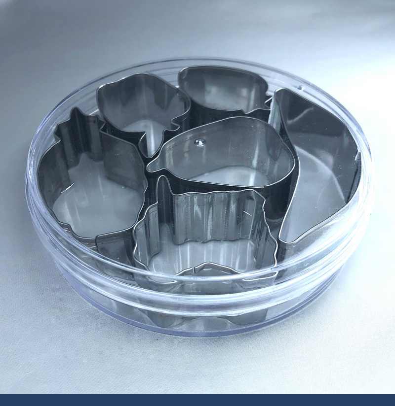 Сверху на фигуре сделан ободок, для предотвращения врезания в руки при надавливании. Упаковка: пластиковая коробка. Изготовлены из нержавеющей стали. Не требуют особого ухода, промойте в тёплой воде с минимальным использованием моющих средств. При бережном отношении набор вырубок простужит вам очень долго.