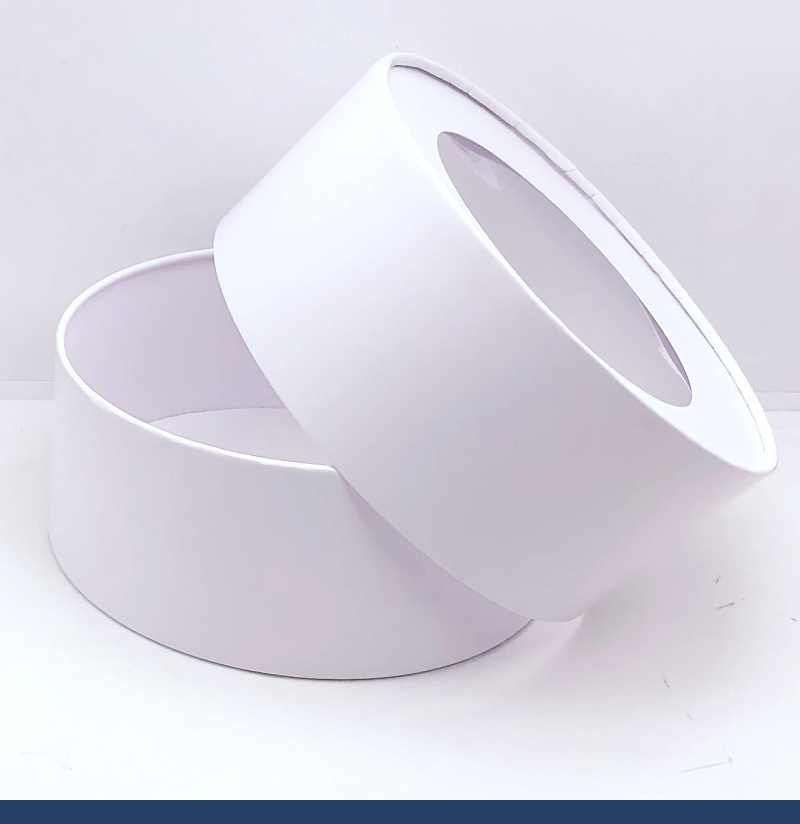 Имеет цилиндрическую форму (шайба). Белая коробка с окном. Конструкция коробки: крышка+дно, поставляется в собранном виде. Особенность коробки в том, что крышка по высоте равна высоте донышка, это делает коробку особенно прочной, вы можете быть уверенны, ваш заказ коробок доедет к вам в целости.