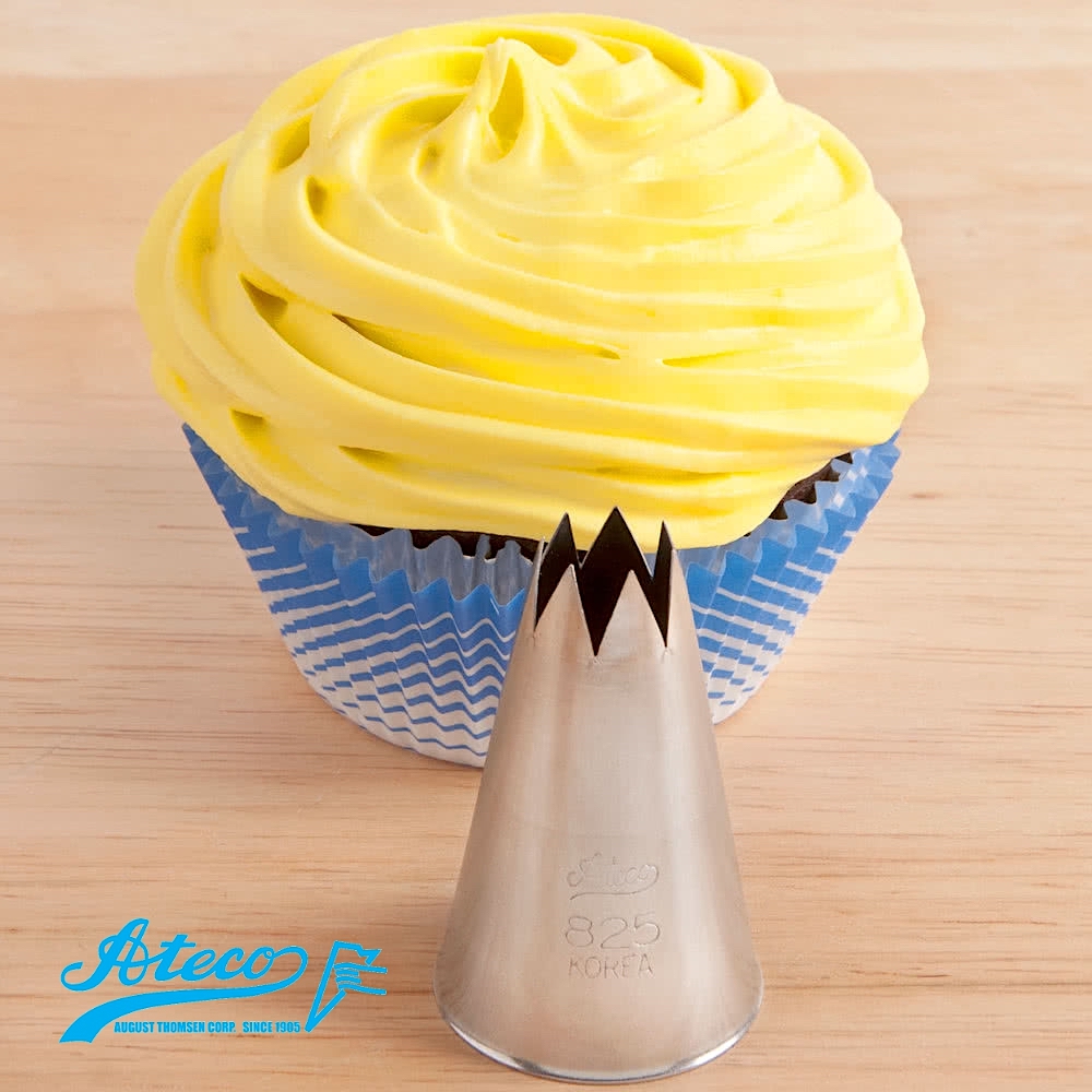 Кондитерские насадки Атеко номера 820, 821, 822, 823, 824, 825, 826, 827, 828 и 829 - это открытые звезды, используются для декорирования выпечки (тортов, капкейков, бискивтов и проч.) розами из крема, шоколада или айсинга, отсаживания теста или создания другого декора (ракушки, бордюры).