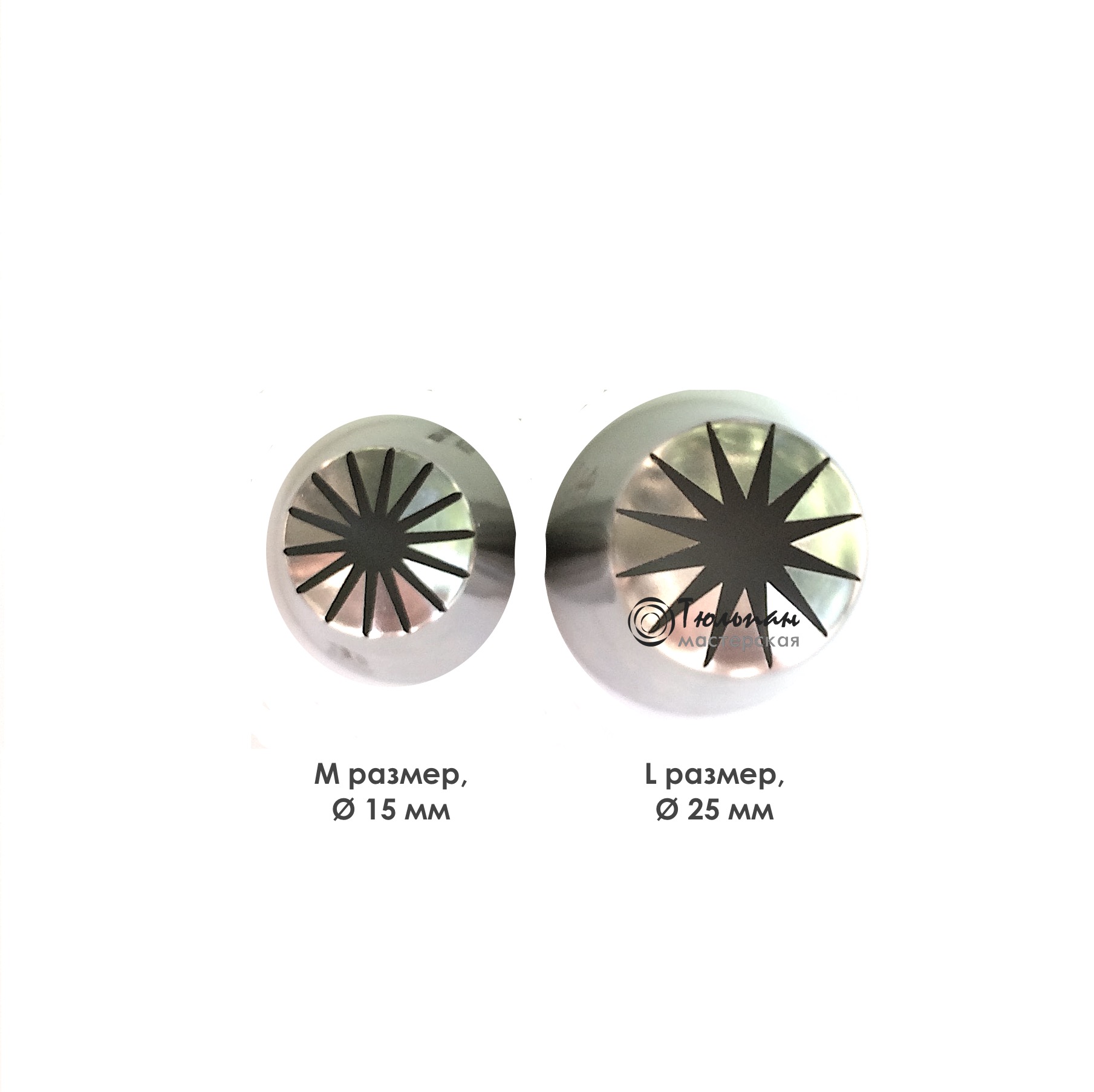 По размеру относятся к типовым насадкам размера М от Мастерской Тюльпан. Высота насадки 40 мм, рабочий диаметр 15 мм.